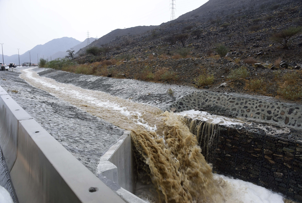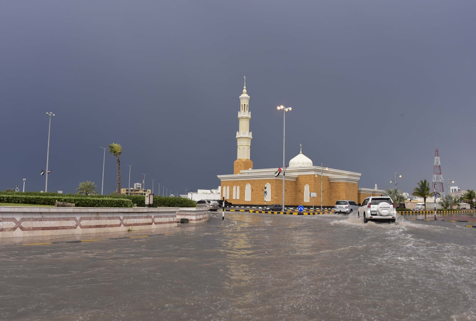 Rainfall averaged between moderate and heavy affected Fujairah, Khorfakkan, Kalba and the eastern coast cities, resulting in rushing water in the valleys and plateaus, and flooding on roads and low-lying areas.