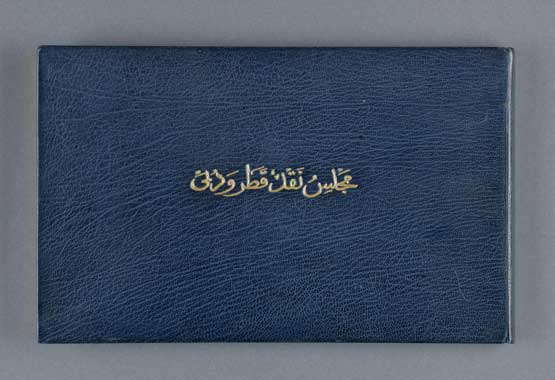 They were held in a blue leather presentation album with the inscription on the cover that read: 'Council For the Currency of Qatar & Dubai'. The notes all have a vignette containing a dhow, derrick and palm tree at left, reverses with denomination at centre and upper corners, and issuing authority across the top. The notes were lightly mounted on card pages and held in place by thin strip of masking tape on back of right edge.