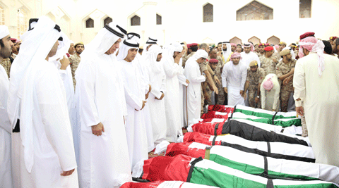 "The martyrs have written a glorious history and hoisted our flag high. The UAE is resolved to continue in the coalition until hope is restored to Yemen," he said.