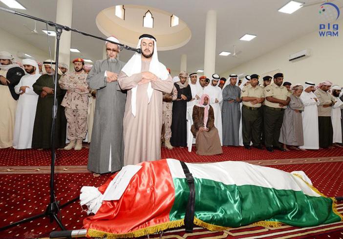 Families of the martyr, a number of officials and dignitaries also offered the funeral prayer, along with Sheikh Salem. The audience prayed to Allah the Almighty to rest his soul in peace and to bestow patience and solace on his family.