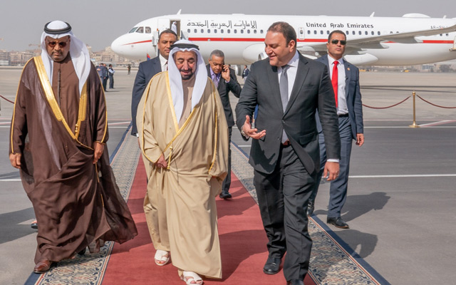 The Sharjah Ruler was received at the Cairo International Airport by Jumaa Mubarak Al-Junaibi, UAE Ambassador to Egypt, Mohammed Obaid Al Zaabi, Head of Protocol and Hospitality Department in Sharjah, Ahmed bin Rakad Al Ameri, Chairman of Sharjah Book Authority, as well as Egyptian senior officials.