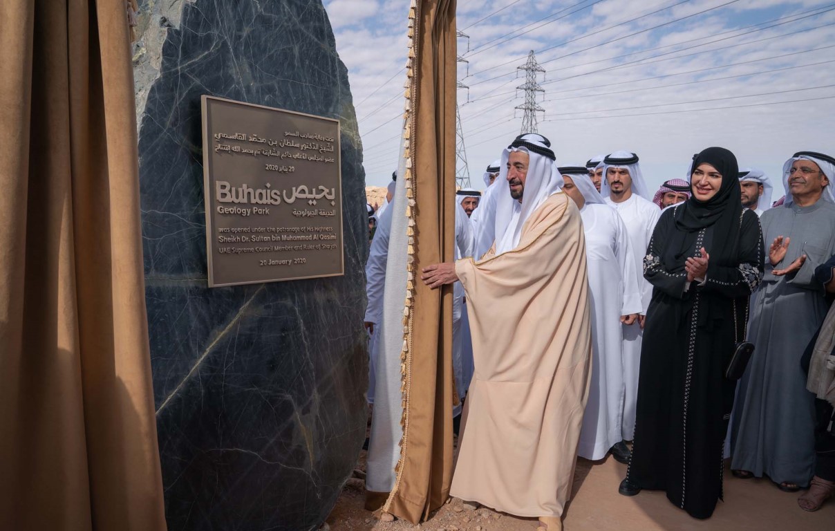 H.H. Dr. Sheikh Sultan bin Muhammad Al Qasimi, Supreme Council Member and Ruler of Sharjah, on Monday inaugurated the Buhais Geology Park, a pioneering project in the field of ecotourism aimed at introducing visitors to the history of Sharjah's geology, and the geological importance of Jebel Buhais and the archaeological areas surrounding it.