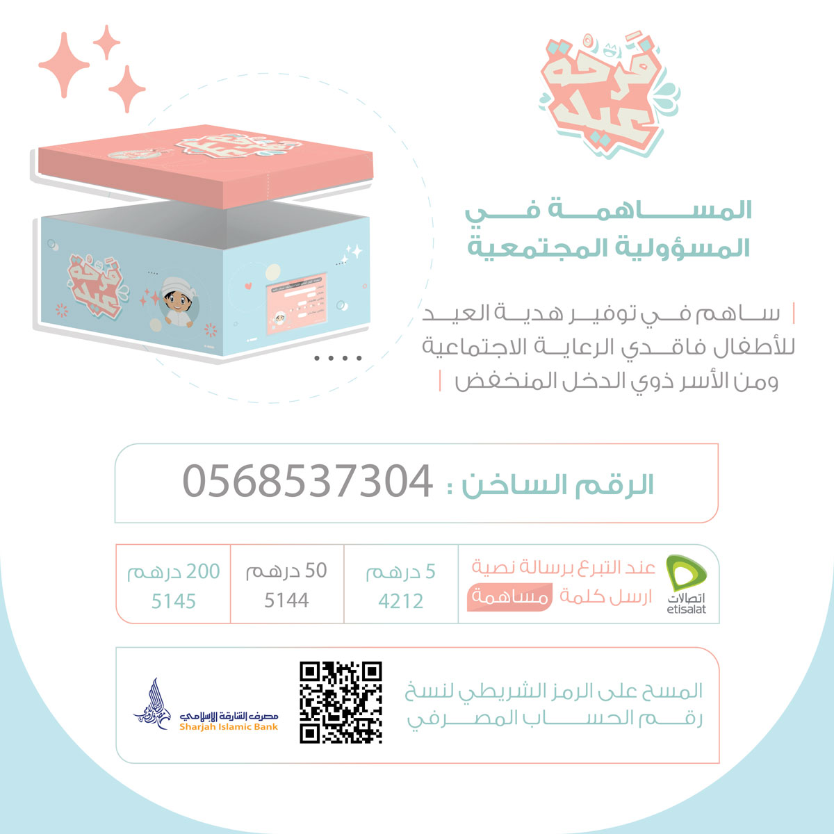 Sharjah Social Services Department, SSSD, has launched the seventh edition of its project, "Eid Joy" to provide gifts and clothes for Eid to orphan children, low-income and children from needy families in the Emirate of Sharjah.
