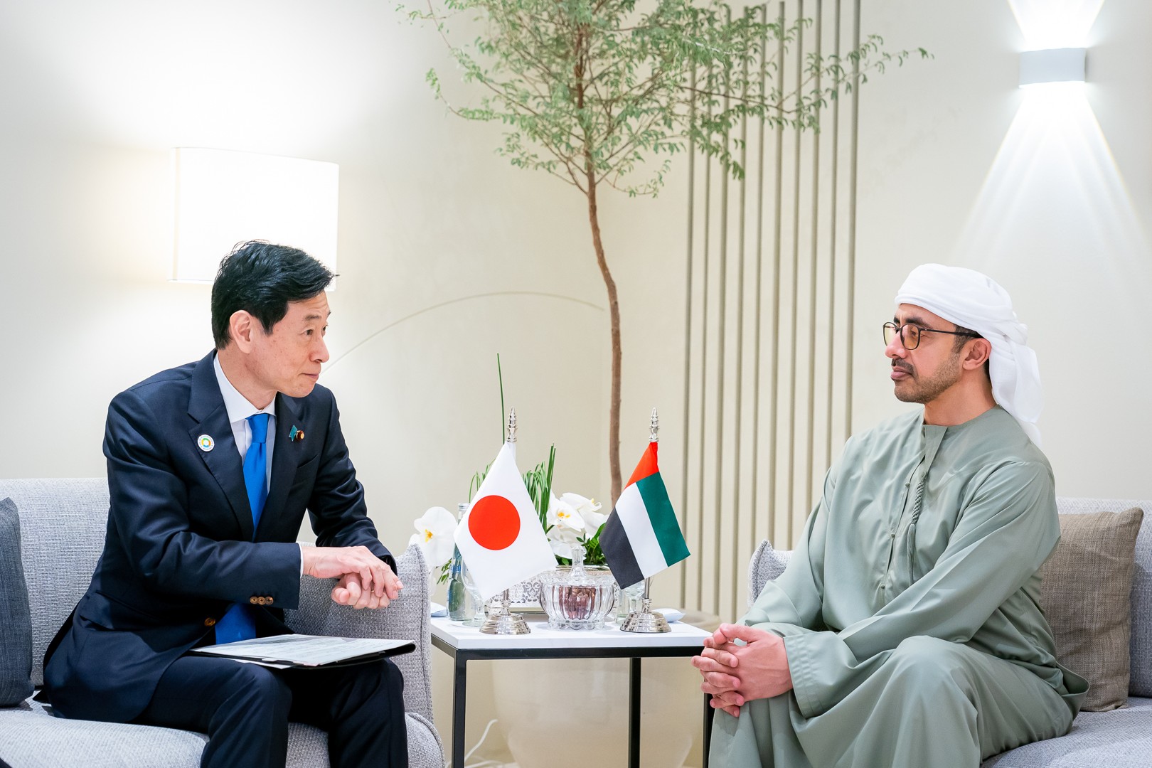 During the meeting, which was held in Abu Dhabi, Sheikh Abdullah and Yasutoshi Nishimura discussed the UAE-Japan bilateral relations and ways to enhance their cooperation, especially in the economic, trade, industrial and investment fields, building on the strategic partnership between their countries.