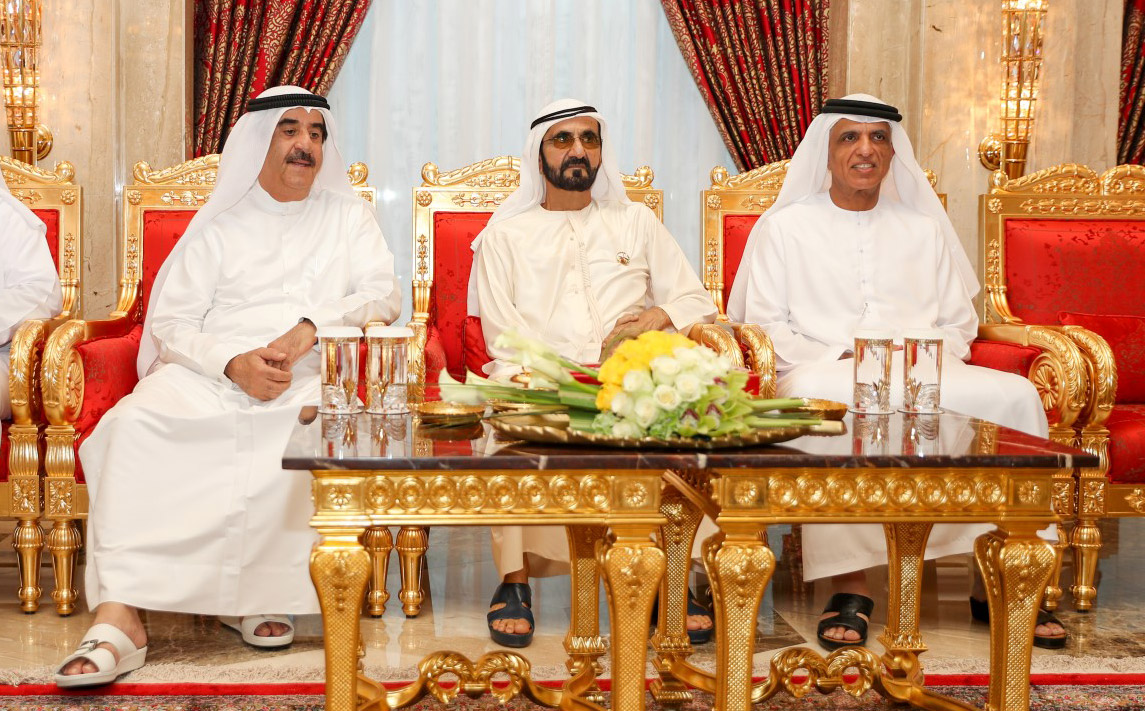 His Highness Sheikh Mohammed bin Rashid Al Maktoum, Vice President, Prime Minister and Ruler of Dubai, this evening received at Za’abeel Palace here H.H. Sheikh Saud bin Rashid Al Mu'alla, Supreme Council Member and Ruler of Umm Al Qaiwain and H.H. Sheikh Saud bin Saqr Al Qasimi, Supreme Council Member and Ruler of Ras Al Khaimah, on the occasion of Ramadan.