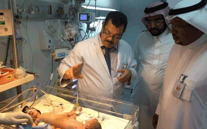 “It is a rare case…so far they are in a good condition and all parts of their bodies are normal…they will undergo further tests before they are transferred to King Abdul Aziz military hospital for an operation,” the paper said with mentioning the twin’s sex.