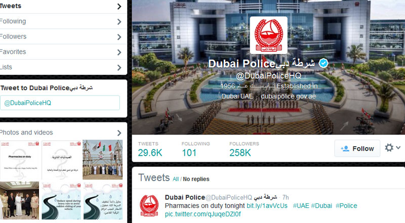Dubai Police, using its twitter handle @DubaiPoliceHQ, has launched a survey to improve its social media communication system.