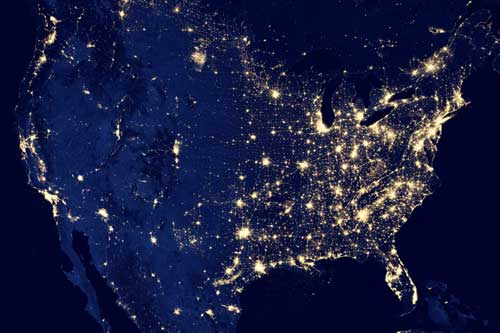 This NASA image obtained December 6, 2012 of the continental United States at night is a composite assembled from data acquired by the Suomi NPP satellite in April and October 2012. The image was made possible by the satellite's "day-night band" of the Visible Infrared Imaging Radiometer Suite (VIIRS), which detects light in a range of wavelengths from green to near-infrared and uses filtering techniques to observe dim signals such as city lights, gas flares, auroras, wildfires and reflected moonlight. (AFP / NASA Earth Observatory)