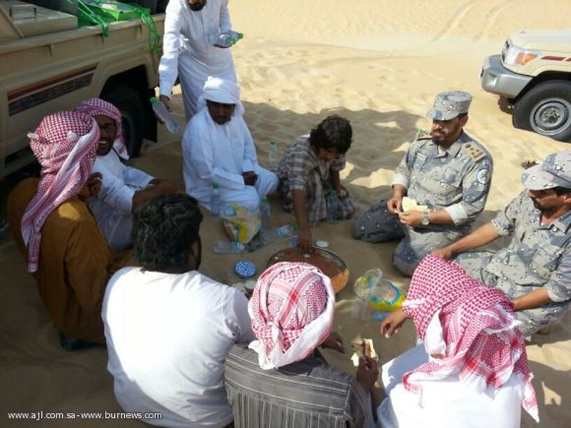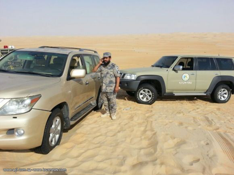 Saudi border guards at Al Bataha crossing point near the border with the UAE succeeded in fining the two with the help of Thuraya satellite company, which used their last phone call to locate their approximate position in the desert.
