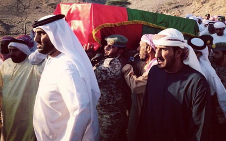 The body of Saif Al Zaabi reached earlier today and a funeral prayer was performed by Sheikh Saeed bin Saqr bin Sultan Al Qasimi, Deputy Chairman of the Ruler's Office in Khorfakkan and Sheikh Haitham bin Saqr Al Qasimi, Deputy Chairman of the Ruler's Office in Kalba, senior armed forces officers and citizens.