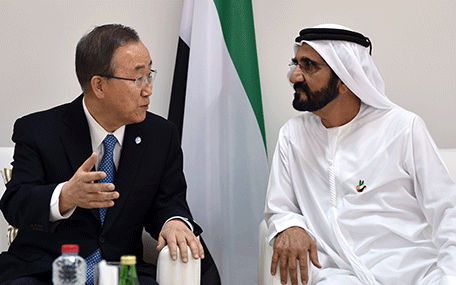 His Highness Sheikh Mohammed bin Rashid Al Maktoum receives UN Secretary-General Ban Ki-moon (Wam)