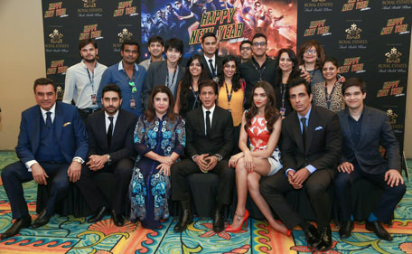 Mini Sarma and her team with the cast of 'Happy New Year'. (Supplied)