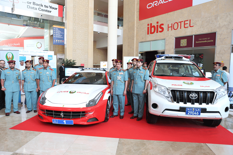 Brigadier Sheikh Sultan bin Abdullah Al Nuaimi, Ajman Police general commander, launched a Ferrari luxury patrol car, equipped with the latest smart security technologies, at Gitex Technology Week 2015.