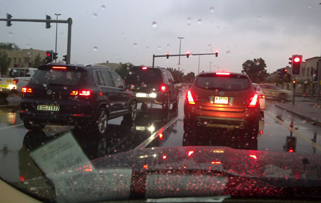 Update: Dubai Police tweeted that several small traffic accidents had resulted in traffic in several areas slowing down due to the rain. However, by lunch time, traffic was crawling back to normal, though very slowly.