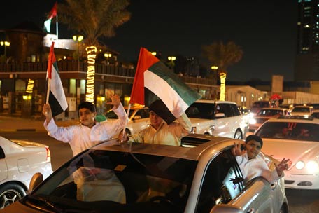 Emirati's take to the street to celebrate on November 27, 2013, after Dubai was chosen to host the World Expo 2020. (AFP)