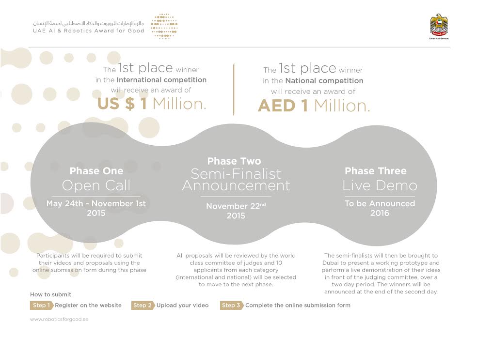 The Organising Committee of the first edition of the $1 million ‘UAE AI & Robotics Award for Good’ has announced that it will start receiving submissions for the award from June 7, 2015.