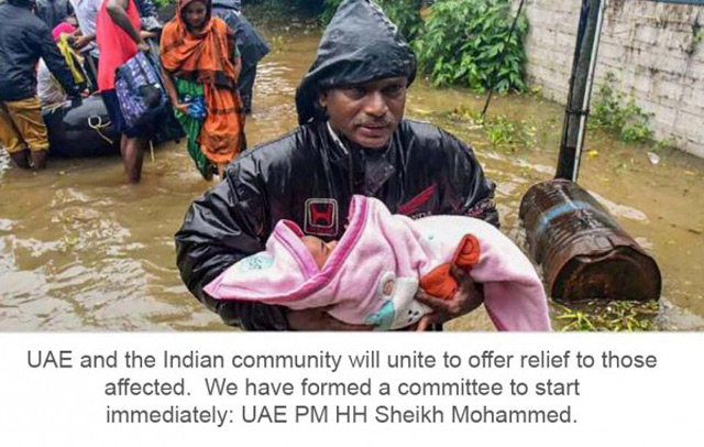 The United Arab Emirates has announced relief and assistance for the state of Kerala that is reeling under a massive natural calamity.