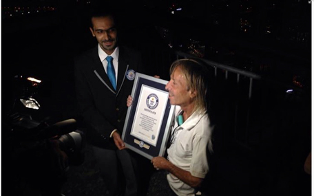 In August 2011, the climber had to use a rope and safety harness during his ascent of the 828-metre Burj Khalifa in Dubai to comply with organisers' requirements.