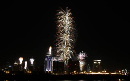 It was followed by a tribute to Burj Khalifa, with fireworks evolving into petals, wrapping the tower much like the desert flower, which is the inspiration for the design of the tower.