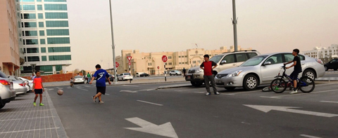 This latest 'reality' picture shows children playing on the street, which threatens their lives and is a danger to drivers and road users.