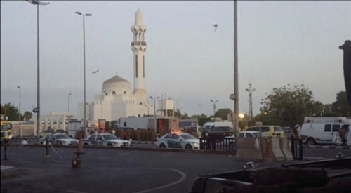 General view of security personnel in front of a mosque as police stage a second controlled explosion, after a suicide bomber was killed and two other people wounded in a blast near the U.S. consulate in Jeddah, Saudi Arabia, in this still frame taken from video July 4, 2016. (REUTERS)