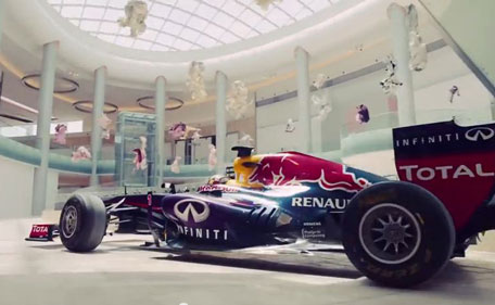It is a bit of an unusual site when the F1 World Champions Infiniti Red Bull Racing car zips through the streets of Abu Dhabi. But it gets crazier, when the sports car suddenly disappears behind the doors of the yet to open Yas Mall on Yas Island.