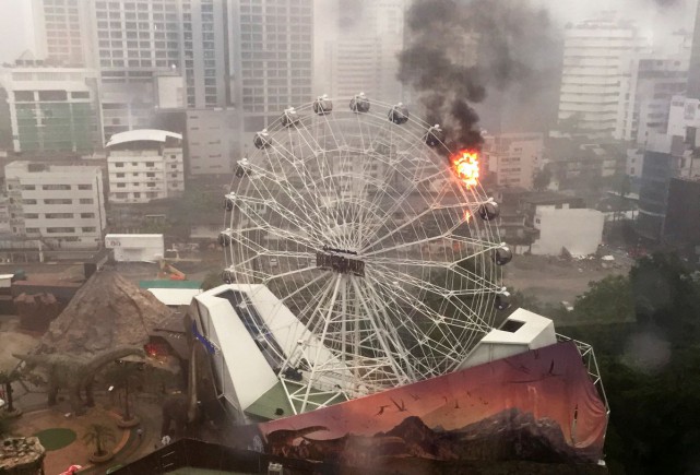 Photographs posted on social media showed fire rising from one of the capsules toward the top of the Ferris wheel, as black smoke billowed up.