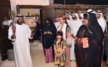 Princess Haya toured the gathering and familiarised herself with Al Ayala Traditional Band Show and a traditional Emirati wedding ceremony. She also toured the event's museum, praising its components which include all characteristics and features of Emirati heritage such as a traditional house and the marine lifestyle of forefathers.
