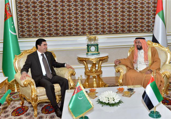 President His Highness Sheikh Khalifa bin Zayed Al Nahyan and President Gurbanguly Berdymukhammedov of Turkmenistan held a meeting here on Saturday that touched on ways to enhance bilateral relations, particularly in the fields of partnerships and investments. They also discussed latest regional developments and issues of mutual interest.