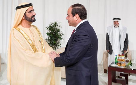 His Highness Sheikh Mohammed bin Rashid Al Maktoum, Vice-President and Prime Minister of the UAE and Ruler of Dubai, and General Sheikh Mohamed bin Zayed Al Nahyan, Crown Prince of Abu Dhabi and Deputy Supreme Commander of the UAE Armed Forces, on Monday attended the opening of the eighth annual session of the World Future Energy Summit, as part of Abu Dhabi Sustainability Week, in the presence of Egyptian President, Abdul Fattah El Sisi.
