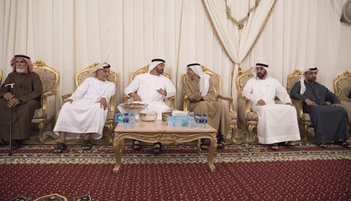 His Highness Sheikh Mohamed bin Zayed Al Nahyan, Crown Prince of Abu Dhabi and Deputy Supreme Commander of the UAE Armed Forces, offered his condolences to Hamad, Sultan and Mubarak Mohamed bin Yarwan Al Neyadi on the death of their mother.