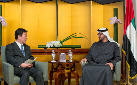 Sheikh Mohamed made his remarks during a meeting today in the Japanese capital Tokyo with Toshimitsu Motegi, Japan's Minister of Economy, Trade and Industry, in attendance of. Sheikh Hamed bin Zayed Al Nahyan, Chief of Abu Dhabi Crown Prince's Court, and Sheikh Abdullah bin Zayed Al Nahyan, Foreign Minister. The two sides discussed ways of enhancing friendly ties between the two countries as well as an array of issues of common interest.