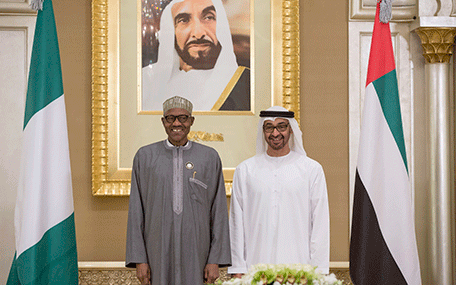 His Highness Sheikh Mohamed bin Zayed Al Nahyan receives Muhammadu Buhari, President of Nigeria (Wam)