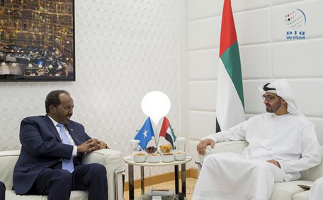 Sheikh Mohamed bin Zayed Al Nahyan received President Hassan Shaikh Mahmoud of Somalia. (Wam)