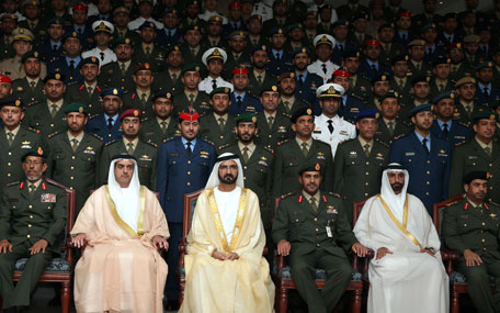 Sheikh Mohammed presented certificates to 128 graduates, including 13 from friendly countries. He then congratulated the graduates, wishing them further progress in their military career. He also urged them to acquire the world's latest defence knowledge and systems so as to better serve their nations.