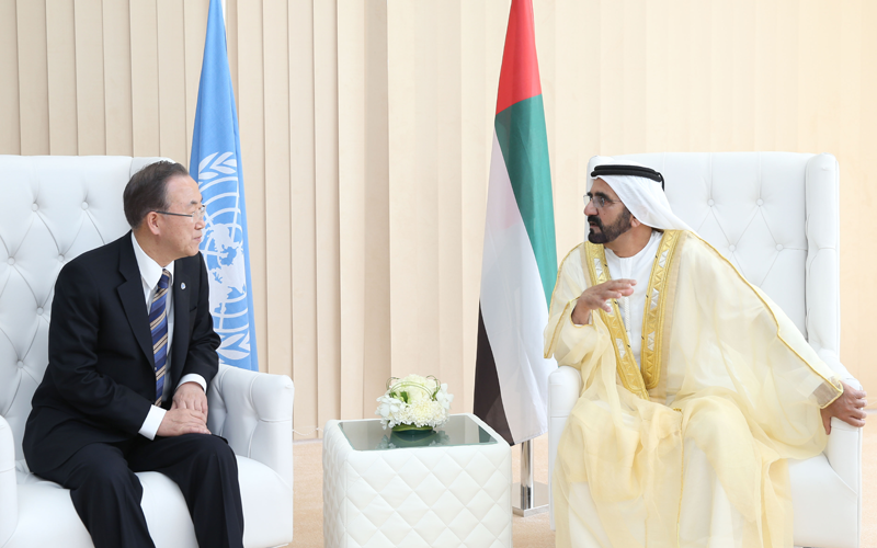 Welcoming UN Secretary and appreciating the UN efforts in the humanitarian aid field, Sheikh Mohammed stressed the UAE’s keenness to extend all possible help to alleviate the sufferings of people in poor regions, especially in the Arab Region.