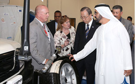 His Highness Sheikh Mohammed bin Rashid Al Maktoum, Vice-President and Prime Minister of the UAE and Ruler of Dubai accompanied by UN Secretary General Ban Ki-moon toured the facilities at Dubai's International Humanitarian City (IHC) where they inspected the run of work at the city and the efforts exerted by IHC in collaboration with international humanitarian organisations extending humanitarian aid to people affected by disasters, displacement and hunger in the world, including Syria’s refugees.