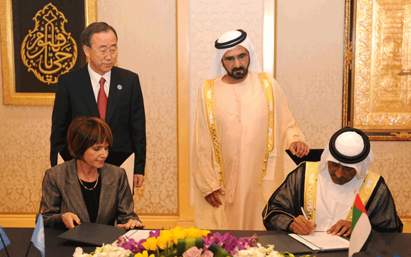 It was inked by Sheikh Ahmed bin Saeed Al Maktoum, Chairman of Dubai Aviation Authority and Chairman of Emirates Group, and Dr. Elissar Sarrouh, UN Resident Coordinator and UNDP Resident Representative to the UAE.