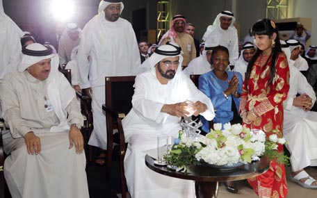Sheikh Mohammed bin Rashid toured the photo gallery exhibition, which showcases the magnitude and life-changing impact of aid provided by the UN and other international humanitarian organisations based in the IHC, in response to numerous disasters worldwide. The total aid received exceeded Dh220 million in 2014.