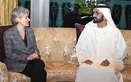 His Highness Sheikh Mohammed bin Rashid Al Maktoum receives Dr. Irina Bokova, Director-General of the United Nations Educational, Scientific and Cultural Organisation, Unesco (Wam)