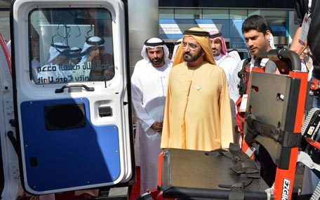 Sheikh Mohammed, who was accompanied by Sheikh Maktoum bin Mohammed bin Rashid Al Maktoum, Deputy Ruler of Dubai, toured the exhibition halls and stands that spread over an area of more than 14,000 square metres. His first stop was at the Smart Ambulance Service stand, managed by the Dubai Ambulance Services, where he was briefed on the technical and human resources available and the smart services offered through Dubai's ambulances to individuals with disabilities or those in need of maternity care and other health services.