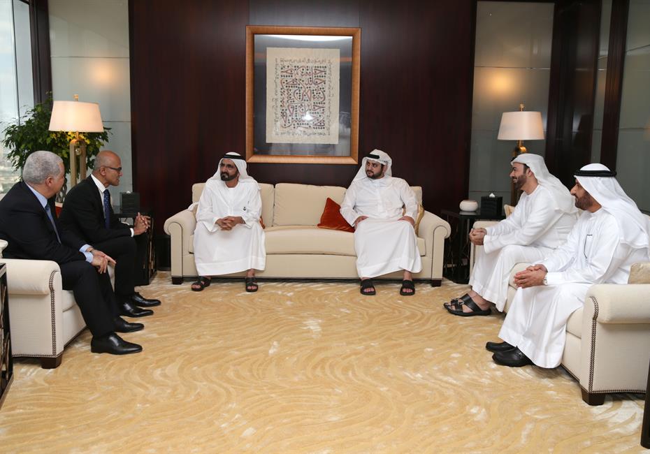 His Highness Sheikh Mohammed bin Rashid Al Maktoum, Vice-President and Prime Minister of the UAE and Ruler of Dubai, received the CEO of Microsoft Corporation Satya Nadella on Monday at the Executive Office.