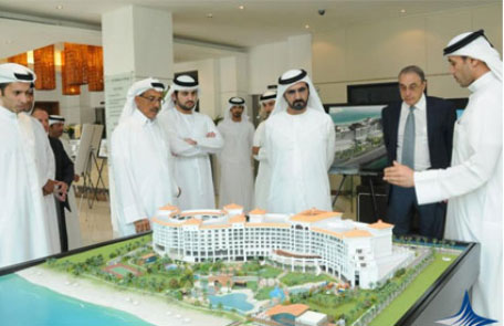 During his visit, Sheikh Mohammed was briefed by chairman of the group Khalaf Al Habtoor on the latest projects being implemented by Al Habtoor Group which include two hotels; one is on Sheikh Zayed Road and the other on the Palm Jumeirah.