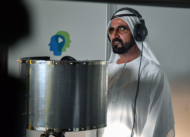 Sheikh Mohammed reviewed all the various stages of the translation "factory", before he joined by giving his own voice to one of the educational videos.