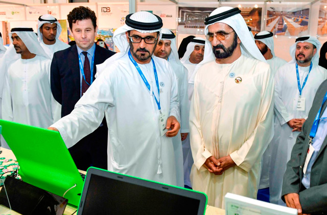 His Highness Sheikh Mohammed bin Rashid toured the halls and pavilions of the exhibition, which is being attended by about 550 government and private departments representing 38 countries, including the UAE.