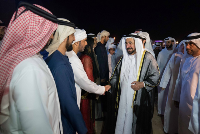 H.H. Dr. Sheikh Sultan bin Mohammed Al Qasimi, Supreme Council Member and Ruler of Sharjah, attended the opening of the fourth Sharjah Desert Theatre Festival at Al Kuhaif area, Thursday evening.