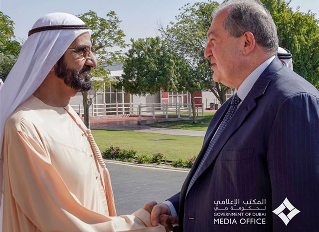His Highness welcomed President Sarkissian in the presence of H.H. Sheikh Maktoum bin Mohammed bin Rashid Al Maktoum, Deputy Ruler of Dubai, and highlighted the importance of the visit to further advance relations between the UAE and Armenia across a range of sectors, including trade and investment.