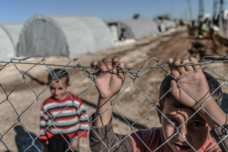A Syrian Kurdish child looks through the fence of a refugee camp in the town of Suruc, Sanliurfa province, on November 5, 2014.(AFP)