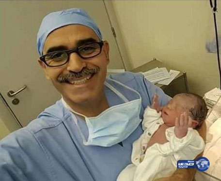 The papers said the picture was shot by a doctor as a “selfie” just after the baby was born at a Saudi hospital.