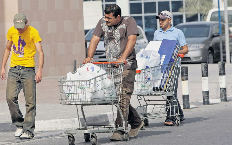 Shoppers leaving a mall in the UAE. Use of plastic bags for shopping is under green scrutiny. (OSAMA ABUGHANIM)